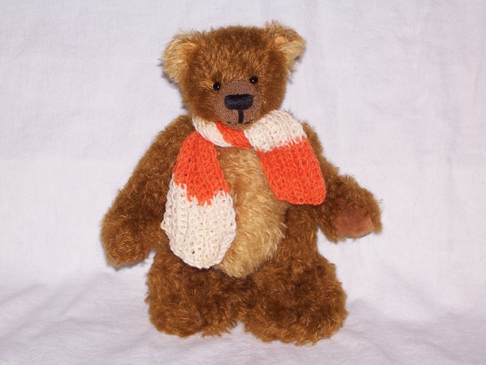 Этого симпатяшку я сшила уже давненько, где-то с месяц назад. Почему я его не показала раньше? причина - шарфики, их надо было довязать и не только для мишки, но и для его будущей хозяйки - дочурке моей коллеги. Мишка вам должен быть знаком, вы его видели раньше ..... правда в виде отдельных деталей...... вспомнили? Я шила его из пакета от ProBear .