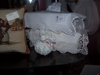 Als de Belgische kant winkel dicht is, dan mag je rustig vitrine fotograferen (voor ideeën) * Когда магазин Бельгийского кружева закрылся, то можно содержимое витрины сфоткать (для идеи).
